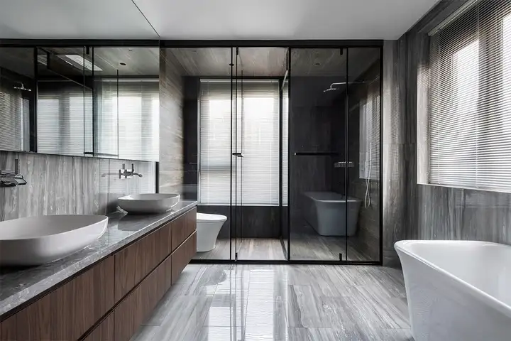 還在為裝修煩惱嗎?關(guān)注我,解決您的裝修煩惱。安星家讓您裝修更安心! ![]() 馬賽克與板巖的中性視覺(jué) 浴室的淋浴間采用玻璃隔斷,借助玻璃的穿透效果讓空間放大。馬賽克墻作為空間的焦點(diǎn),淋浴間的地板、墻、浴池另以深灰色板巖鋪陳,營(yíng)造湯屋的拙雅美感。 水泥粉光的極簡(jiǎn)與內(nèi)斂 大浴室以水泥粉光墻圈圍,除滿足基本的防潮功能之外,也留下仿佛日本建筑大師安藤忠雄式的當(dāng)代建筑影子,自然、極簡(jiǎn)、內(nèi)斂。 玻璃材質(zhì)淋漓盡致的展現(xiàn) 設(shè)計(jì)師利用不同材質(zhì)的對(duì)比打造出一個(gè)有如玻璃盒子中的衛(wèi)浴。黑色馬賽克墻面,帶來(lái)視覺(jué)的活潑效果,清玻璃則帶來(lái)視覺(jué)上的穿透感,而磨砂玻璃特地留了塊透明的區(qū)域,讓人可看到另一個(gè)空間的清水模墻面。 灰色石紋展演精品旅館質(zhì)感 主臥的附屬更衣室、浴室皆以獨(dú)立形式呈現(xiàn),浴室區(qū)采用干濕分離設(shè)計(jì)。配置雙面盆的洗手臺(tái)區(qū)亦兼具梳妝臺(tái)的功能,搭配木作收納柜、石材地板,成為更衣室的延伸。 鏡墻映射馬賽克墻的豐富場(chǎng)景 浴室墻面、地面采用精巧的雙色馬賽克,搭配鏡墻,營(yíng)造空間的景深,一掃小空間的窄小壓迫感,也映射了豐富的馬賽克場(chǎng)景,讓空間產(chǎn)生虛實(shí)輝映的效果,進(jìn)而提升空間的個(gè)性與品位。 無(wú)依附空間的巧妙 以白膜玻璃作隔斷的浴室,少了可依附的主墻面,所有給排水管線都得安排在天花板與地板,因而產(chǎn)生了由天花板而下的下垂式龍頭設(shè)計(jì)。風(fēng)格鮮明的面盆,讓平光水膜面的花崗石,溫潤(rùn)中見內(nèi)斂。 造型展現(xiàn)出極簡(jiǎn)的生活印象 此空間以極簡(jiǎn)且富現(xiàn)代性的概念設(shè)計(jì),不論是色調(diào)或材質(zhì)都以最低限的方式呈現(xiàn),過(guò)道與虛體空間也都在無(wú)形中被統(tǒng)合。玻璃隔斷帶來(lái)視覺(jué)穿透感,襯托空間的輕盈與極簡(jiǎn)印象。 鏡面妙用展現(xiàn)剔透奢華感 在衛(wèi)浴空間中利用鏡子的反射,不但可讓空間放大,也配合了整體空間的風(fēng)格,展現(xiàn)出晶瑩剔透的效果以及視覺(jué)的穿透感。此外,茶鏡與明鏡的搭配使用,也可帶來(lái)色調(diào)上的層次感。 打造精品飯店般舒適的衛(wèi)浴 長(zhǎng)形的客浴以墨鏡、大理石、明鏡打造出精品飯店的風(fēng)格。明亮的落地窗,兩側(cè)是實(shí)體長(zhǎng)窗,中間則拉下窗簾,營(yíng)造三窗的趣味錯(cuò)覺(jué)。窗與窗間的細(xì)長(zhǎng)立柱,與天花板的凹槽相對(duì)應(yīng),在凹凸之間,暗示出井然的空間秩序。 運(yùn)用洗石子打造質(zhì)樸衛(wèi)浴 由于衛(wèi)浴的采光不好,所以設(shè)計(jì)師利用半穿透的隔斷以強(qiáng)化照明,并利用洗石子與石材等材質(zhì),使空間呈現(xiàn)舒適清爽印象。局部的玻璃隔斷引入自然光線。主臥以一道可180°旋轉(zhuǎn)的門片,讓原本的公共衛(wèi)浴可視需求納入私人使用,并將公私區(qū)域區(qū)隔。 深淺灰調(diào)理性世界 深淺灰色的石英磚從立面延伸到壁面,襯出白色面盆、臺(tái)面以及其他設(shè)備的質(zhì)地與線條。橫向的長(zhǎng)鏡對(duì)應(yīng)下方浴柜,拉大了柜寬,又以其細(xì)致比例產(chǎn)生輕巧感。浴柜與背墻的色調(diào)相同,減少量體的沉重感,宛如隱入的整體設(shè)計(jì)。 幾何簡(jiǎn)約冷靜的客浴 灰色調(diào)客浴里配置直柜、圓鏡,橫向燈具鎖在鏡上,兩者結(jié)合充滿雕塑感,表現(xiàn)出現(xiàn)代幾何的趣味。側(cè)墻板巖磚與灰色主墻,讓空間富有觸感。整個(gè)客浴呈細(xì)長(zhǎng)狀,面盆一體成型,下方不作收納用,強(qiáng)調(diào)其落地的極件與柱體力度。左側(cè)長(zhǎng)柜具收納功能,并延續(xù)整體修長(zhǎng)的視覺(jué)感。 ![]() |