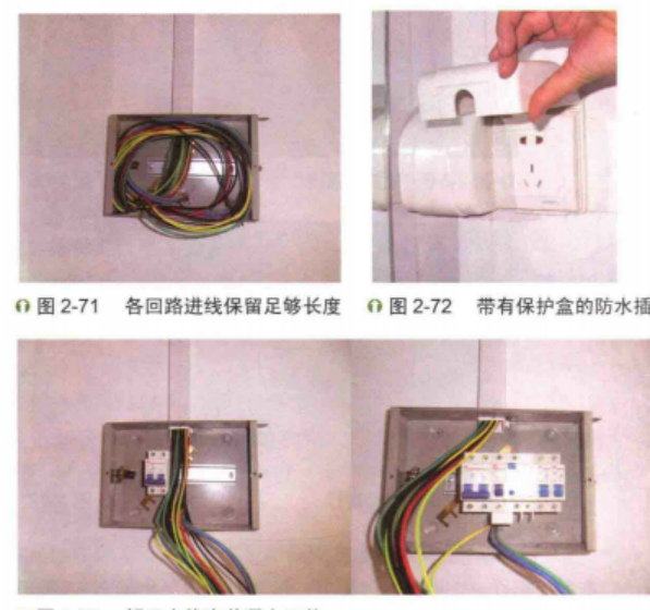 還在為裝修煩惱嗎?關(guān)注我,解決您的裝修煩惱。安星家讓您裝修更安心 穿線完畢后必須進行檢測,檢測合格后才能進行封槽。 (1)檢測。布線完成后必須立刻進行一次全面檢測,確保沒有問題才能夠進行封槽施工。主要檢測項目為強電線路的通電檢測、弱電線路的通斷檢測以及絕緣檢測。檢測可以通過萬用表、兆歐表等進行,如圖2-57所示。此外還要根據(jù)圖紙查看是否有漏裝的開關(guān)插座,接通電源徹底清查,看是否有短路或斷路情況發(fā)生,發(fā)現(xiàn)問題立刻返工。 (2)封槽。檢測合格即可封槽,封槽前灑水濕潤槽內(nèi),調(diào)配與原有結(jié)構(gòu)的水泥配比基本一致的水泥砂漿以確保其強度,絕對不能圖省事采用膩子粉填槽。封槽完畢水泥砂漿表應(yīng)平整,不得高出墻面,如圖2-58所示。天花的燈線則必須套好蛇管,并用電工膠布或壓線帽保護好,如圖2-59所示。 (3)交底。電工作業(yè)至此要告一段落了,這時通常是木工以及泥水工進場作業(yè),必須等待泥水和木工作業(yè)完成的差不多了,電工才能繼續(xù)作業(yè)。后期電工工作主要是安裝開關(guān)、插座及燈具,如果現(xiàn)在就安裝好,容易在木工和泥水工施工時被損壞。在離場前電工需要和木工以及泥水工做一個交底,確認需要預(yù)留的位置和燈線出口,尤其是天花更是需要特別交代明確,避免出現(xiàn)幾個工種交接不好而造成不必要的麻煩。 第七步:安裝開關(guān)、插座面板及配電箱。 待木工及泥水工完工后,就可以接著進行電工的后期作業(yè)了,主要是安裝工程。 (1)清理底盒垃圾,確保盒體無變形,無破裂。 (2)單相兩孔插座,面對插座的右孔或上孔與相線相接,左孔或下孔與中性線相接;單相三孔插座,面對插座的右孔與相線相接,左孔與中性線相接,上孔與地線連接。開關(guān)接線方式為:相線進開關(guān),通過開關(guān)進燈頭,中性線直接進燈頭,地線進燈座。 (3)用剝線鉗去掉電線絕緣層1cm左右,根據(jù)左中性線右相線上地線的基本原則,將裸銅線穿入擰開的線孔中再將螺釘擰緊,最后將面板對準底盒將螺釘擰緊即可。電視、電話以及計算機等通信設(shè)備插座,應(yīng)先用萬用表測量線路,再進行接線安裝。以一個帶開關(guān)的插座為例講解具體安裝方法,如圖2-60至圖2-67所示。 ![]() (4)最后將面板與底盒擰固即可,如圖2-68所示。多個面板安裝必須校準水平,要求所有的面板在一個基本水平面上,平直、方正,如圖2-69所示。 ![]() 安裝完面板,應(yīng)在面板表面貼膜保護,避免在后續(xù)乳膠漆工程中污損,如圖2-70所示。 開關(guān)插座安裝要點如下: (1)開關(guān)、插座安裝必須垂直、水平、不松動,且開關(guān)開啟靈活。 (2)電視、網(wǎng)絡(luò)及電話分配器應(yīng)安裝在便于檢查的地方,比如可以放置在柜子上或者柜子里。各回路進線要保留足夠長度,如圖2-71所示。 ![]() (3)水多的地方必須采用帶有保護盒的防水插座,如圖2-72所示。配電箱有金屬和塑料兩種材料制品,安裝方式可以分 為明裝和暗裝兩種,區(qū)別只是是否埋入墻內(nèi)。配電箱的具體安裝過程如圖2-73至圖2-75所示。 配電箱安裝要點: (1)選擇位置。應(yīng)選擇干燥、通風(fēng)、方便使用處安裝,不得安裝在潮濕的地方。一般安裝在大門后或進門口鞋柜上 方,距地面高度約為1.4m,以方便操作。 (2)注意各分路線的容量總和不得超過進戶線的容量。 (3)按照電路圖規(guī)定安裝漏電開關(guān),每個回路都應(yīng)單獨裝設(shè)一個漏電開關(guān),各個漏電開關(guān)的連接要用匯流排,同時開關(guān)之間的引線必須與進線線徑一致,以方便檢查電路。 (4)配電箱和開關(guān)箱的金屬箱體、金屬電器安裝及外殼等必須做保護接地,保護中性線應(yīng)通過接線端子連接。 (5)配電箱內(nèi)的漏電斷路保護器,其漏電動作電流不應(yīng)大于30mA,額定動作時間為0.1s,同時要求具有超負荷及短路保護功能,安裝完必須立刻進行短路測試。 (6)安裝完成后必須立即清理配電箱內(nèi)的垃圾,并注明各回路名稱。各回路進線保留足夠長度圖2-72帶有保護盒的防水插座 ![]() 1 上一篇燈具安裝