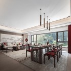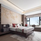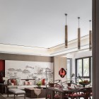 01 禪意·雅致 觀嵐戶型 自然 / 舒適 / 格調(diào) / 雅致 禪意包含的極簡而雅致,閑暇時光中對自然的追求,大量的木質(zhì)背景及家具,給予客廳最自然的狀態(tài),營造出世外桃源般的意境。樸素且清新,乃修身養(yǎng)性之地。 大理石木質(zhì)餐桌、藤編餐椅,云石吊燈,餐廳是一個完整的空間,但又與客廳相呼應。以自然之型為靈感來源,凸顯出現(xiàn)代都市生活中的東方韻味。 運用柵格構(gòu)建空間,時而縹緲,時而唯美,時而靈動,時而硬朗,中式的韻味緩緩涌現(xiàn),溫馨氣氛更為彰顯。 背景的花枝仿佛是從窗外伸展進來,內(nèi)外皆景,擁攬自然。 02 端莊·古典 瀾萃戶型 古典 / 雅致 / 傳承 / 風韻 以端莊、古典為設計理念,拋開傳統(tǒng)中式束縛,用國際東方式體現(xiàn)一種人文精神界的新追求?!八未痹刎灤┱麄€空間,營造空間中的清透、休閑、舒適感。高雅穩(wěn)重的配色、體現(xiàn)品質(zhì)的家具,所有的一切都在描述家的概念。 新中式風格的餐桌配以優(yōu)雅的餐椅,臺面配以精致的餐具,呈現(xiàn)出一種華麗從容的舒適氛圍感。 主臥延續(xù)了主色調(diào),米白、褐色、加上點綴的紅色,紅色有著傳統(tǒng)東方的大氣穩(wěn)重,同時也帶給我們歷久彌新的沖擊感。背景的銀杏枝繁葉茂,燦燦的金色增添了尊貴感。 提取山水卷軸元素運用到背景上,一隅山景,若隱若現(xiàn),營造出朦朧美。 粉色的抱枕與后方的盛開的朵朵繁花,輕盈且柔和,房間如少女的夢境般,浪漫而溫馨。 上一篇我夢想的家