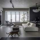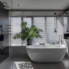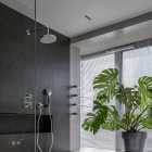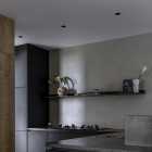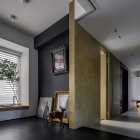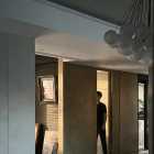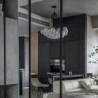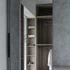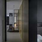 本案的屋主是一名典型的“深圳女孩”,她有著極強(qiáng)的工作能力、豐富的個(gè)人愛好、對(duì)待所有事物都同樣認(rèn)真且專注的態(tài)度,她鮮明的性格底色、有棱角的人物形象、剛?cè)岵?jì)的處事風(fēng)格一度給我們留下深刻的印象。我們?cè)诒景傅目臻g與視覺構(gòu)成上以強(qiáng)調(diào)立體感的塑造來(lái)還原我們對(duì)屋主印象的詮釋,“棱角分明且一體兩面”便成為了本次設(shè)計(jì)的重要線索。 所以在空間構(gòu)成及細(xì)節(jié)結(jié)構(gòu)上的刻畫都在尋求一個(gè)自然表達(dá)的立體狀態(tài),在材質(zhì)上我們也運(yùn)用了深色材質(zhì)所構(gòu)成的“影”與空間中充足的自然光形成對(duì)比,光與影的構(gòu)成進(jìn)一步強(qiáng)化空間視覺上的立體感,光與影又將時(shí)間與空間當(dāng)中的生活故事完美的融合到一起,最終將藝術(shù)融于空間將空間變?yōu)閿⑹碌妮d體。 我們著重地應(yīng)用了交疊空間的理念,在功能區(qū)與功能區(qū)之間形成若干相互重疊互補(bǔ)的空間功能區(qū)域,以使得各局部空間的功能尺度得以延展,這其中比較典型的應(yīng)用例如起居室空間與多功能室地臺(tái)的結(jié)合,地臺(tái)以固裝的形式補(bǔ)充了起居室的社交與活動(dòng)范圍,同時(shí)更加豐富了生活中的行為體驗(yàn),而地臺(tái)本身又同屬多功能室的整體空間,在視覺以及內(nèi)部的功能尺度來(lái)講也是很大的延展。最終使得疊加后的空間總量遠(yuǎn)遠(yuǎn)超出物理空間的限定,無(wú)形之中增大了空間的實(shí)用面積。結(jié)合所有這些理念以及技法最終呈現(xiàn)的是人與空間氣質(zhì)高度統(tǒng)一且兼顧對(duì)生活與藝術(shù)理解的舒適靜謐獨(dú)居之家。 環(huán)形動(dòng)線在居住空間中的直接作用一般是提供更高效和便捷的動(dòng)線路徑,然而這一次在本案中我們找到了更多的發(fā)揮。由起居室、主套空間、衣帽間及陽(yáng)臺(tái)所形成的環(huán)形動(dòng)線使得主套私密空間與外部起居室及陽(yáng)臺(tái)空間很好的串聯(lián)在了一起,除了動(dòng)線上更加靈活外還兼顧了個(gè)人獨(dú)居的安全保障。 ![]() 為了更好的打開空間視覺,我們?nèi)趸诵P(guān)空間的存在感,將玄關(guān)收納功能與鄰近的空間功能與結(jié)構(gòu)進(jìn)行整合,圖中右下柜體是進(jìn)門收納核心,下方為鞋柜底部有留空設(shè)計(jì)方便快速換鞋,上方有內(nèi)凹開放格可以快速放置隨身小件物品,圖中左側(cè)白色柜體為進(jìn)門衣柜,方便進(jìn)出大件外套及包包的快速收納,以兩側(cè)收納疏導(dǎo)出一條高效且簡(jiǎn)潔的回家動(dòng)線,幾個(gè)簡(jiǎn)單的收納動(dòng)作一氣呵成的完成由室外到市內(nèi)的空間轉(zhuǎn)場(chǎng)。 ![]() 起居室可以享受外部都市美景我們做了最大程度的視野保留,并在兩側(cè)合理的安排了空間功能可以將美景更好的發(fā)揮,利用飄窗結(jié)構(gòu)形成圍合的客廳氛圍,飄窗上可以靠坐同時(shí)可以放置臺(tái)燈或藝術(shù)品,靠窗的柜體下方我們專門預(yù)留的開放的書柜格子,方便屋主隨手拿放書籍等常用物品。 ![]() 自然采光與室內(nèi)光氛圍營(yíng)造,空間中的幾個(gè)采光面我們都做了深入思考,結(jié)合空間所對(duì)應(yīng)的功能,我們將光線與未來(lái)的生活場(chǎng)景相結(jié)合,營(yíng)造出不同的空間意境。一束光的進(jìn)入可以打破空間本身的束縛,是心靈一剎那的遠(yuǎn)行。 ![]() 空間中運(yùn)用了一些撞色手法營(yíng)造出些許古典韻味的空間氛圍,視覺裝飾的背后則是隱藏著強(qiáng)大的餐廚功能柜,以一柜之力整合了餐廚空間的大部分高頻功能及串聯(lián)了兩部分功能空間的秩序。 ![]() ![]() 三人沙發(fā)、方幾、躺椅共同構(gòu)成了一個(gè)自由切換狀態(tài)的休閑空間,沙發(fā)款式與尺度的選擇實(shí)現(xiàn)了同時(shí)能夠滿足補(bǔ)充背后餐桌多人用餐的臨時(shí)就坐需求,美感與實(shí)用兼顧。餐桌的尺寸及材質(zhì)選擇都是嚴(yán)格把控的,可以完美的與柜體統(tǒng)一,同時(shí)高度及寬度尺寸上又不會(huì)影響到柜體開門的動(dòng)作。 ![]() 作為一名具有很好的藝術(shù)氣質(zhì)的獨(dú)立女性,屋主對(duì)自身居住的環(huán)境有很高的要求,我們更多的將主要活動(dòng)區(qū)域和主動(dòng)線上的視覺處理的更加藝術(shù)化,同時(shí)讓大部分視覺上盡可能的避免了生活痕跡及隱私內(nèi)容的外露,為了能夠達(dá)到更加極致的效果我們也使用了一些特別的產(chǎn)品,例如升降式油煙機(jī)、隱藏式洗菜盆等,借助這些產(chǎn)品我們得以完整的保留廚房功能,同時(shí)保證了視覺上的純粹與藝術(shù)性。 ![]() ![]() 廚房?jī)?nèi)部銜接的原有生活陽(yáng)臺(tái)被納入室內(nèi)作為家政收納空間,與廚房相連增加了空間尺度并整合了收納體量。 ![]() 以繪定義空間功能,以畫定義空間調(diào)性,灰色微水泥和銅色納米漆金屬板的材質(zhì)選擇是為了更貼合油畫般的天然紋理,讓整個(gè)空間都充滿藝術(shù)的自然調(diào)性。材質(zhì)撞色強(qiáng)化室內(nèi)的固定結(jié)構(gòu)及功能結(jié)構(gòu)的層次,黑白灰的底調(diào)之中搭配木質(zhì)以及金屬材質(zhì)的質(zhì)感來(lái)強(qiáng)調(diào)過(guò)渡關(guān)系,整體的空間視